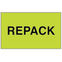 Part Details: Repack Shipping & Handling Labels. Fluorescent labels bring attention to sensitive packages. Size:3 x 5". Color: FLUORESCENT GREEN. Priced per roll of 500