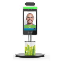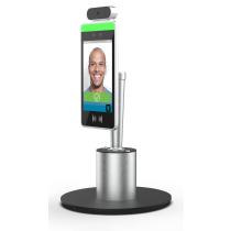 Facial recognition and temperature verification Wi-Fi enabled device. Includes cameras, 8" screen, bundled software, LED status bar, Antimicrobial silver powdercoat finish base. Unit uses direct power