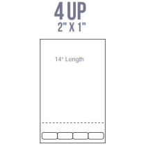 Part Details: Labels - BCI Premier - 8.5" X 14" Integrated Label For Direct Mail And Traditional Business Form Applications - 4 Up - 2" X 1" - Perforation At 3" From Bottom - Labels Are .25" From Right And Left - .625" From Bottom With No Spaces Between Labels - 1,500 Sheets Per Case