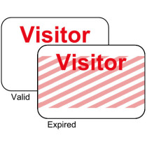 Part Details: Visitor Badges LITE, Manually-Issued One-Day Expiration Adhesive Onestep Timebadge Expiring Badge Preprinted with "Visitor". Simply Peel Away Liner, Press Together and Issue. Size = 2" x 3" a Product of Tempbadge. Quantity of 500.