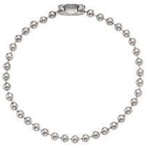 Part Details: Nickel-Plated Steel Ball Chain, 4 1/2", No. 3 Bead Size, (114mm) (2.3mm Bead), with Connector. Quantity of 1000.