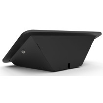 The Rokku Capsule design includes a recessed frame and sloped kiosk displace for a full tamper proof enclosure. Access to the On/Off and volume buttons are blocked while still allowing for charging and limited audio port access. The fully enclosed kiosk creates a secure storage area for peripheral devices and cabling, like our battery pack. With soft edges and rounded corners, the aesthetic of this enclosure is very appealing and fits all display environments. The Rokku Capsule can mount to a wall or counter-top and when counter-top mounted a swivel base plate can be added.