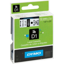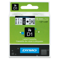 Part Details: D1 45013 Dymo Standard Labeling Tape Black on White (1/2" x 23"L) 1 cartridge