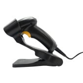 Handheld barcode scanner with stand, 1D, USB, for mPOP. Color: Black