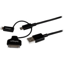 Part Details: Cable - StarTech - 1 m (3') 3 in 1 Charging Cable - Multi USB to Lightning or 30-pin Dock or Micro-USB for iPhone / iPad / iPod / Android - Apple MFi Certified - USB 2.0