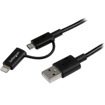 Part Details: Cable - StarTech - 1 m (3') 2 in 1 Charging Cable - USB to Lightning or Micro-USB for iPhone / iPad / iPod / Android - Apple MFi Certified - Multi Phone Charger - USB 2.0